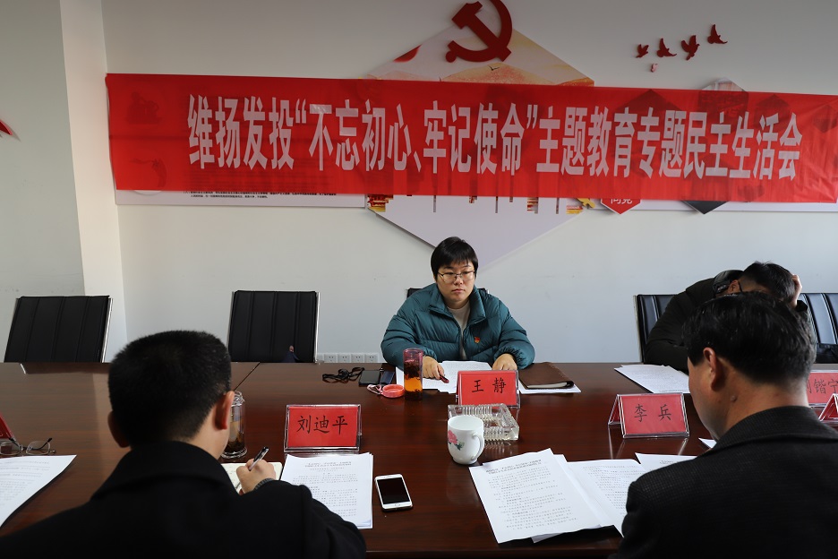 按照區(qū)委“不忘初心、牢記使命”主題教育有關(guān)工作要求,12月6日,維揚發(fā)投組織召開“不忘初心、牢記使命”領(lǐng)導(dǎo)班子專題民主生活會。        公司領(lǐng)導(dǎo)班子對開好此次專題民主生活會高度重視,會前進行了精心準(zhǔn)備。一是認真制定方案;二是精心組織學(xué)習(xí)研討;三是開展談心談話;四是系統(tǒng)梳理檢視問題。        本次會議受到了區(qū)委第八巡回指導(dǎo)組的高度重視,區(qū)委第八巡回指導(dǎo)組王靜、劉鍇寧兩位領(lǐng)導(dǎo)親臨會議指導(dǎo)。 會議共有五項議程:一是由公司黨支部書記、董事長李兵代表公司領(lǐng)導(dǎo)班子通報公司2018年度民主生活會整改措施落實情況及本次專題民主生活會征求意見情況。二是由李兵同志代表公司領(lǐng)導(dǎo)班子作檢視剖析。三是公司領(lǐng)導(dǎo)班子成員依次作檢視剖析,其他班子成員對其提出批評意見。四是巡回指導(dǎo)組領(lǐng)導(dǎo)作點評講話。五是李兵同志總結(jié)并作表態(tài)發(fā)言。        會上,維揚發(fā)投領(lǐng)導(dǎo)班子緊扣會議主題,談?wù)J識、談體會,擺問題、找不足,認真開展批評和自我批評,查擺認識深刻,整改措施務(wù)實,達到了尋找差距、修正錯誤、增進團結(jié)、共同提高的目的。這次民主生活會開出了高質(zhì)量,達到了預(yù)期效果。       會議強調(diào),公司領(lǐng)導(dǎo)班子要清醒看到,對照中央和省市區(qū)委的要求,我們還存在不少差距和不足。會后,對查擺出來的問題,要細化整改方案及措施,建立詳實明細的整改清單,明確整改目標(biāo)、工作舉措、完成時限,嚴格實行銷號管理。